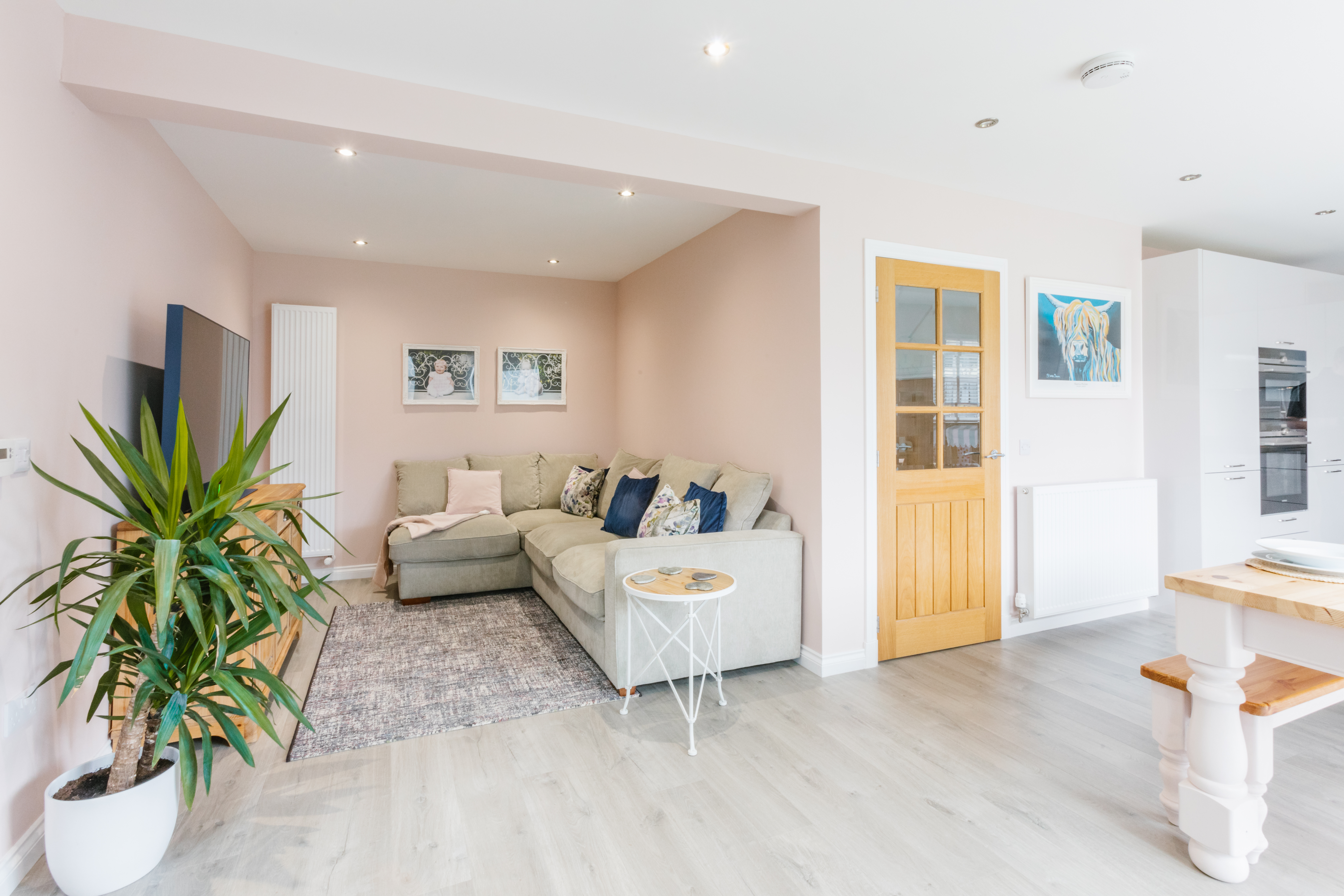 We carried out structural alterations to the existing property, forming a new opening into to the existing garage, which we converted. This formed a new open plan kitchen, living and dining area, along with a utility cloakroom. To complement the new space, we installed a structural steel beam to widen the existing rear door opening and installed a new patio door.