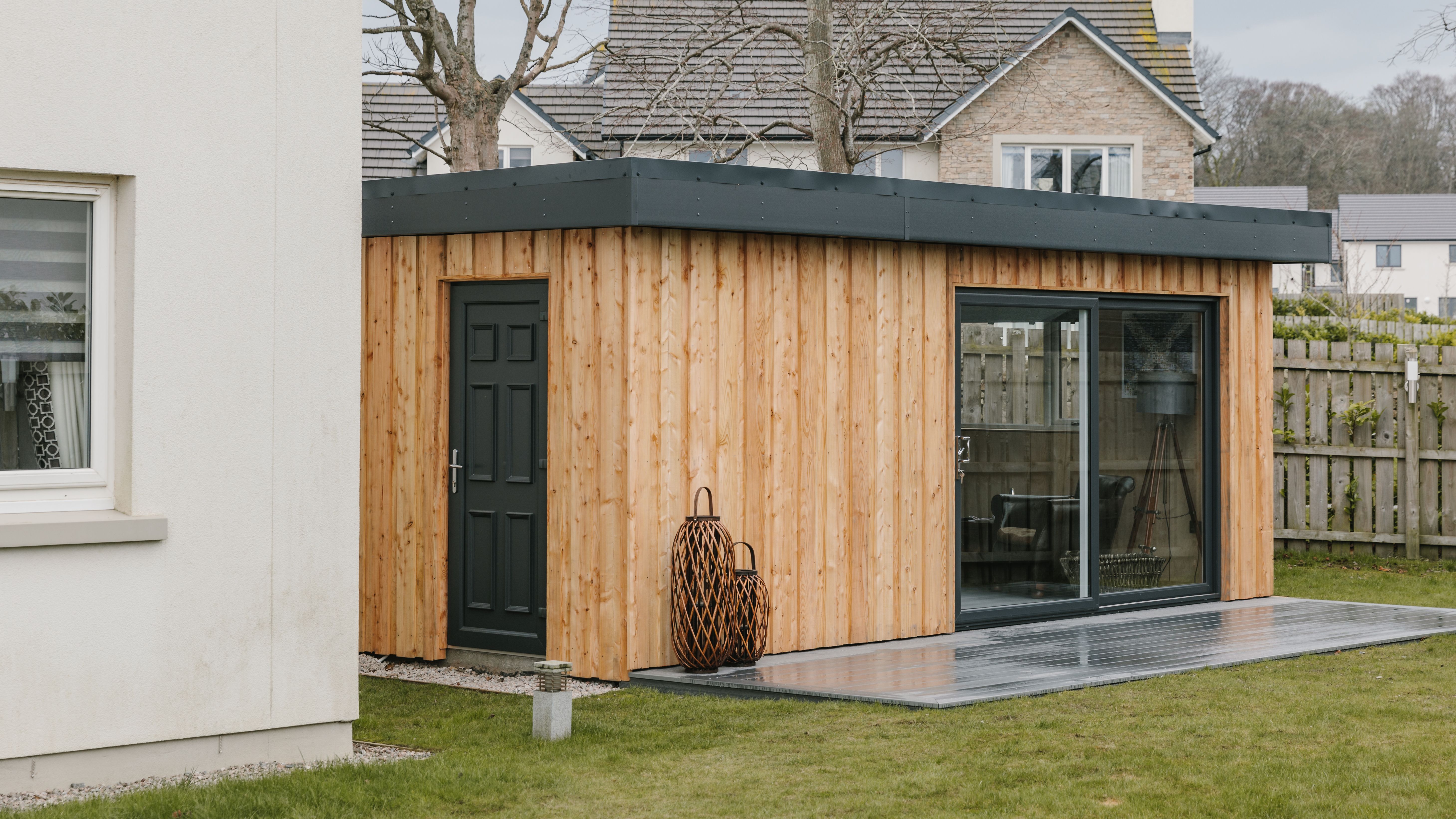 In recent years we have seen a huge demand for garden studios. This purpose built studio, allows our client to have a multi use social and workout space, along with a garden store. The exterior is clad using dressed scotlarch and the interior walls in birch face plywood which gives a clean sharp finish.